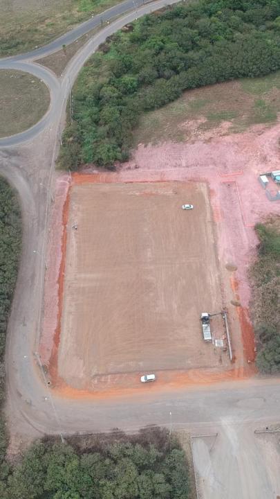O platô está pronto, terraplenado. Estamos iniciando as instalações dos muros pré moldados.