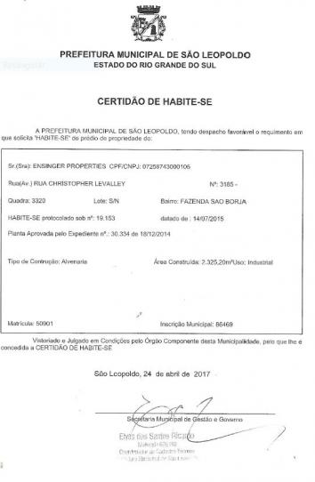 Entregamos mais uma Carta de Habite-se de 2.325m² para a Indústria Ensinger, na cidade de São Leopoldo.