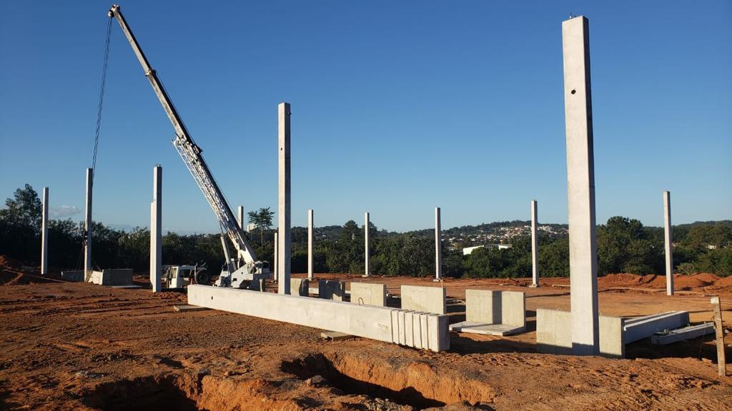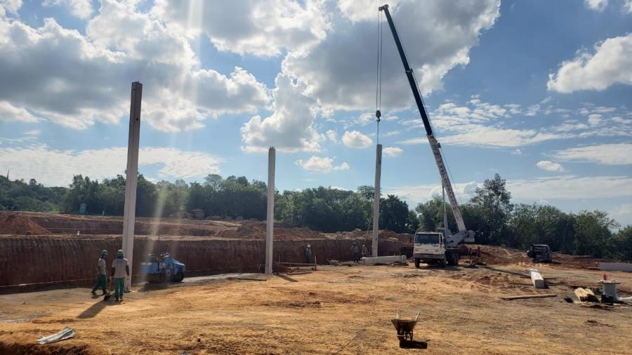 Esta semana iniciamos a erguer os pilares da obra Taurus Armas, e já concluímos os 20 pilares do Pavilhão 06. Agora a obra começará a subir rápido!