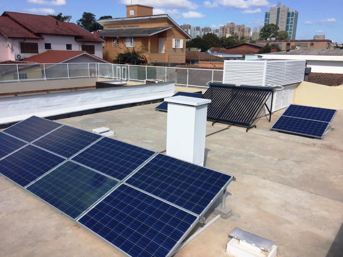 O primeiro sistema são placas fotovoltáicas, que captam energia solar e transformam em energia elétrica.