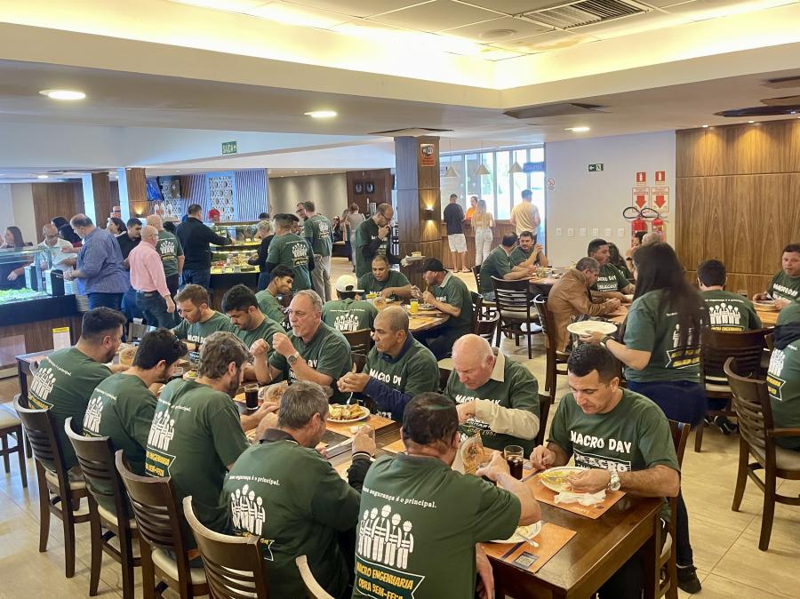 Foi um dia inteiro de atividades educacionais, para todos os colaboradores da Macro Engenharia. Jogos, sorteios, músicas, um grande almoço, mais comes e bebes e um show engraçadíssimo de Bruna Feitoria. Ela entende tudo de obra!
