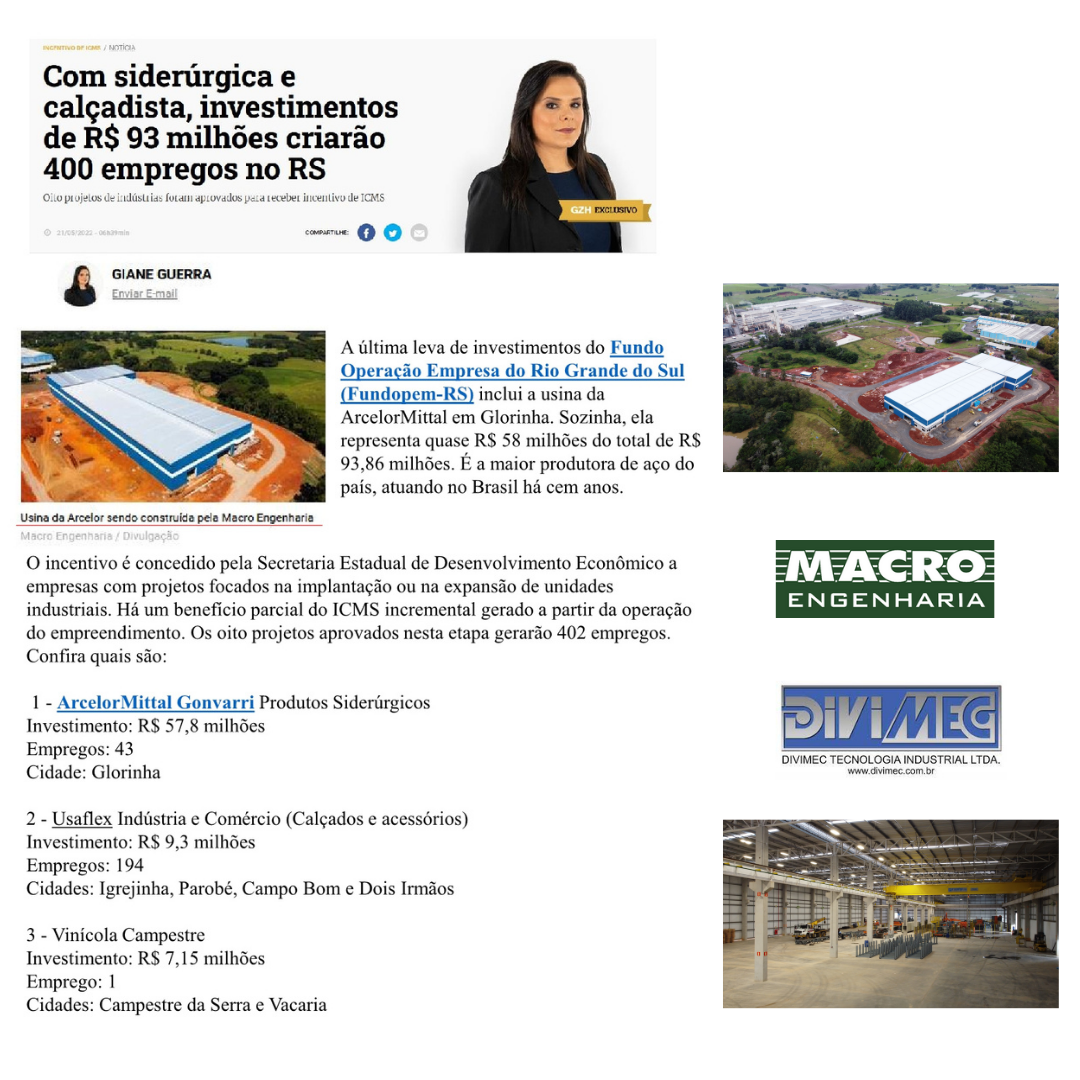 O empreendimento da ArcelorMittal Gonvarri lidera os investimentos realizados no RS pelo Fundopem. É a maior produtora de aço do país, prestes a se instalar na cidade de Glorinha.