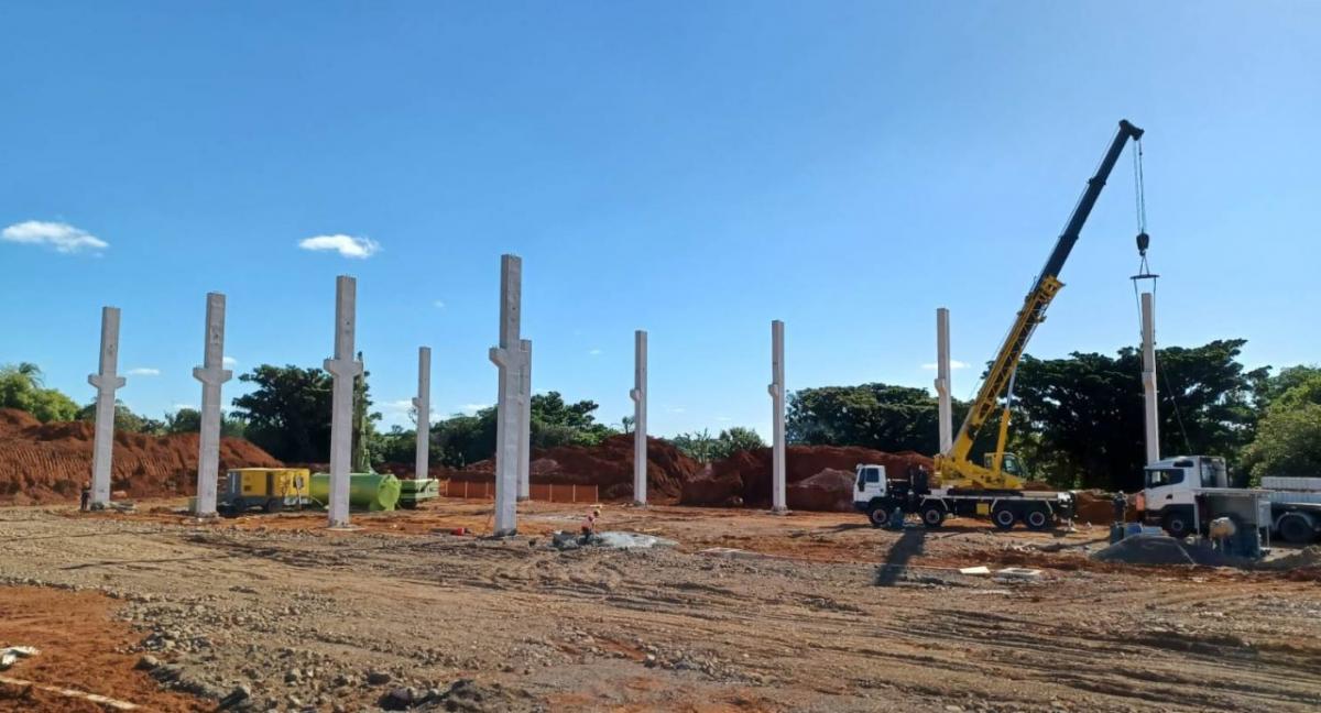A semana inicia com quase 60% dos pilares posicionados, e com toda a equipe motivada com o andamento da obra.