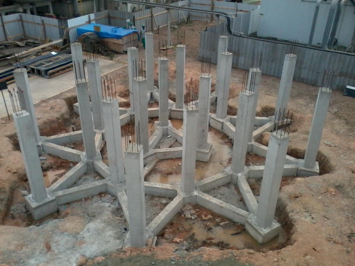 Fundação e base tanque.