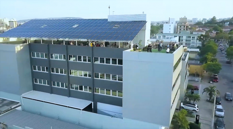 O projeto é composto por 186 placas solares de 340W, do tipo BIPV (Building Integrated Photovoltaics). Isto significa que os módulos solares são incorporados na estrutura predial, servindo também como cobertura.